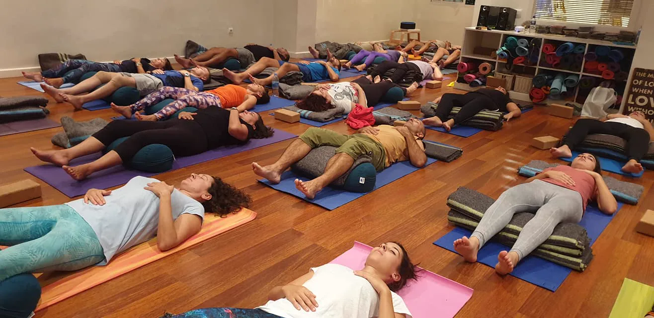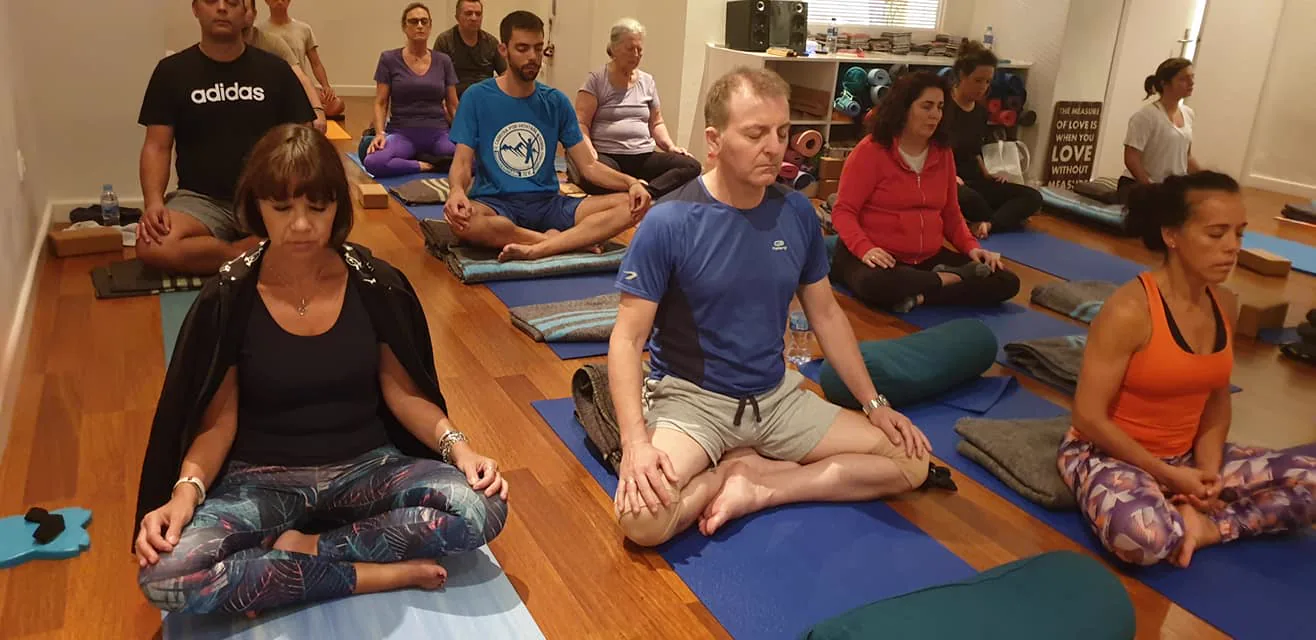 Práctica multinivel en el estudio con asana, pranayama, mantras, mudras y meditación.